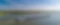 Aerial view of a truck driving on a straight road through vast green fields at sunset